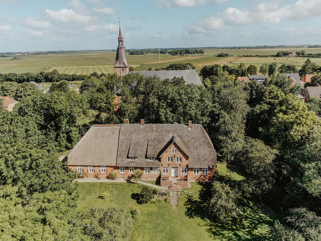 Mit Blick auf die wunderschöne St. Anna-Kirche liegt das ehemalige Pastorat von einem parkähnlichen Garten inklusive ausgedehnten Teichen und Grachten umgeben im Zentrum von Tetenbüll. 2018 wurde das etwa 1780 erbaute Haus – begleitet vom Denkmalschutz – als Private Nordsee Hideaway mit drei Ferienwohnungen ebenso liebevoll wie aufwändig von Grund auf renoviert und sehr persönlich in höchster Qualität ausgestattet.