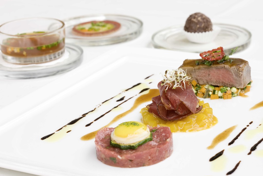 Internationale Kocherfahrung in der Spitzengastronomie gepaart mit Liebe zu den Köstlichkeiten der Region – aus diesen Elementen zaubert Björn Leist seine Küchenkreationen. Im klaren, reduzierten Ambiente des eleganten Restaurants werden die Sinne für eine kulinarische Reise durch die Finessen der Rhöner Küche geschärft – mit dem klaren Fokus auf Fleisch.