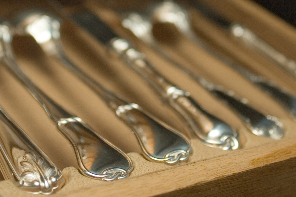 Besteck aus 800g/925g punziertem Sterling Silver-Material von Jarosinski & Vaugoin kann auch in der Spülmaschine gereinigt werden – ohne optische oder gar funktionelle Einbußen. Sollte es jedoch nach Jahrzehnten häufigen und genussvollen Gebrauchs nötig sein, bietet das Putz- und Reparaturservice des Hauses seine Dienste an.