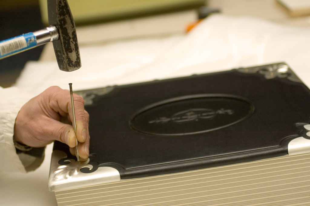 Diplomarbeiten, Gewebe-, Leder- und Holzeinbände für Gästebücher, Chroniken, Fotoalben, Buchkleinauflagen und Sonderausgaben, Speisekarten, Mappen, Urkundenrollen und -kassetten, aufwändige Kunsteinbände, Reparaturen und Restaurationen