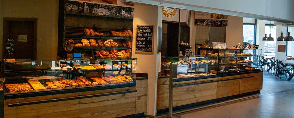 Bäcker- und Konditormeister und -Meisterinnen produzieren in dieser Backstube aromatische Krustenbrote, herzhaft-saftige Vollkornbrote, feinwürzige Roggenmisch- und Ciabattabrote, bunte Petit Fours, zartblättrige Plunderteilchen sowie Torten aus aller Welt und viele jahreszeitliche Spezialitäten: Feines Hefegebäcke zu Ostern, köstliche Christstollen, Baumkuchen & Co zur Weihnachtszeit.
