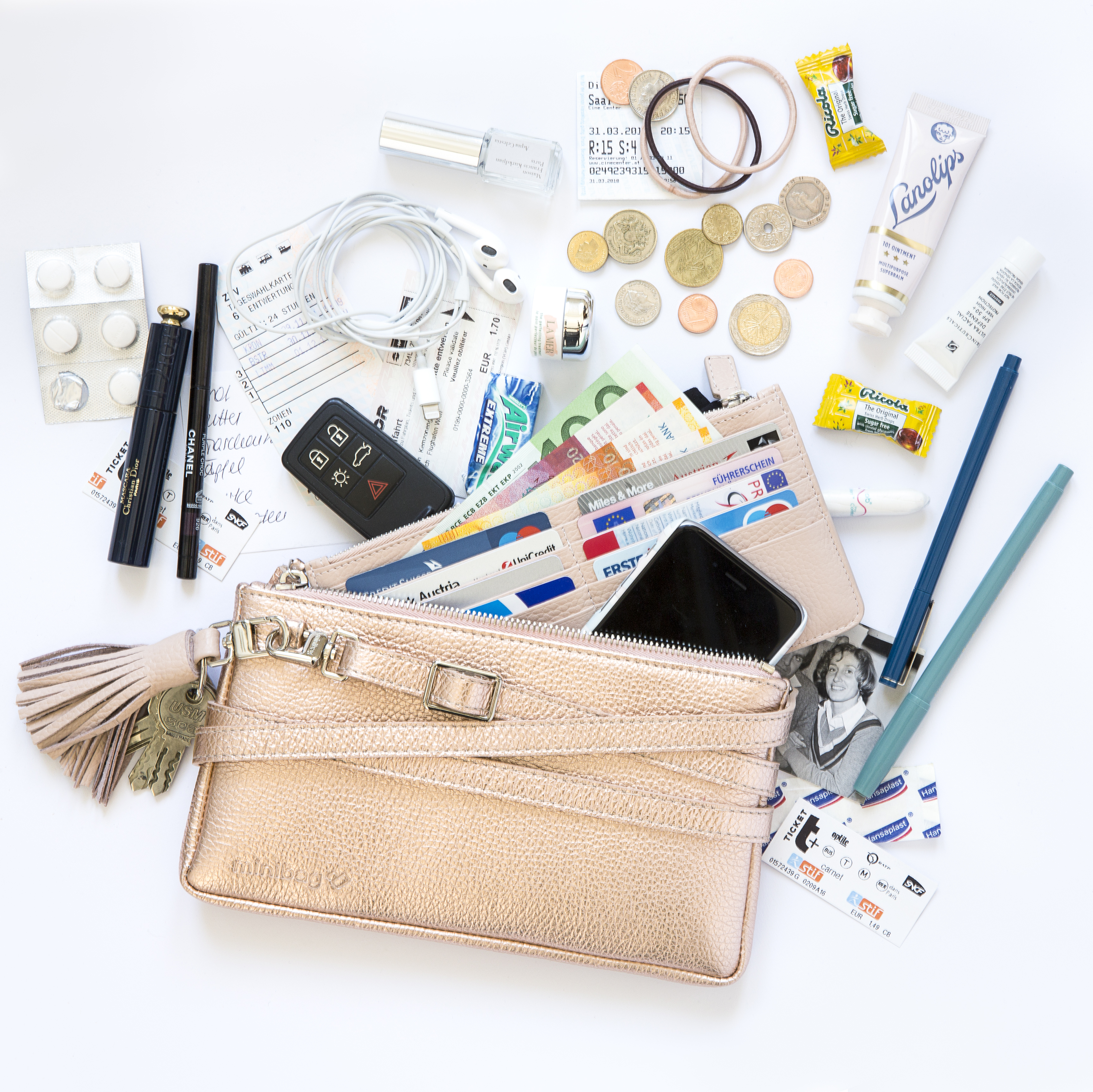 minibag - the leather crossbody bag with its adjustable shoulder strap, able to be wrapped around exactly 5 times, can be used as clutch, detachable wallet or even bum bag. It is produced in Switzerland and Italy. Coming in different colours, it is fashionable, practical and versatile – therefore suitable for almost every occasion.