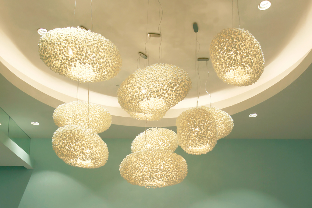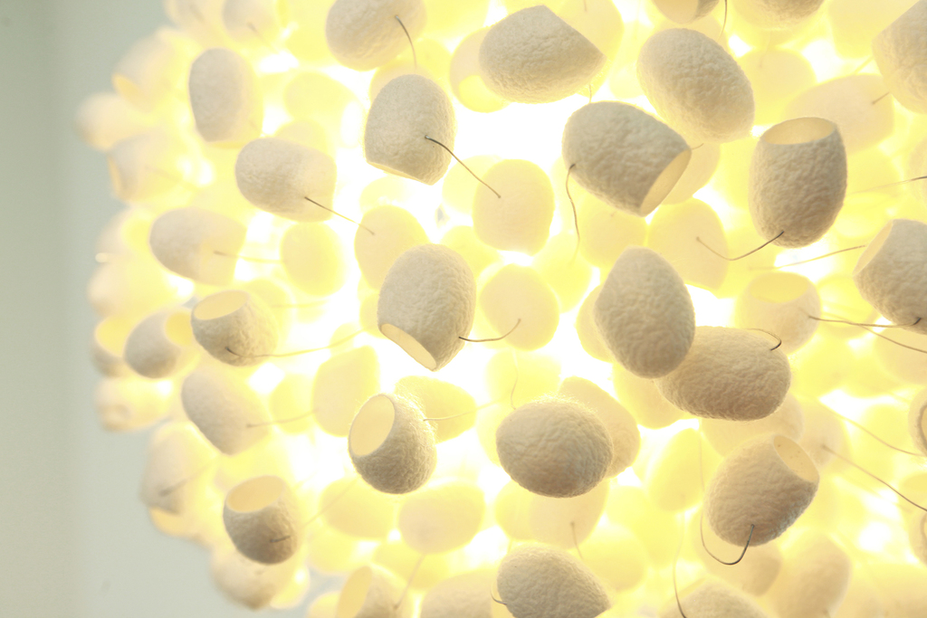 For Paradise pendant lighting design, the miracle of each silk cocoon being formed by its creator is taken and exploited to the full by illuminating it with the miracle of electric light.