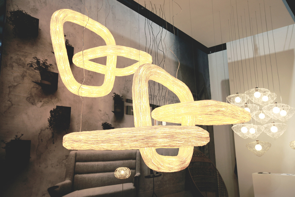 In Infinite Flow no 5, the liquid lines of light of the piece are described in rattan material, whose translucence and light refraction generate a wonderful warmth for your interior.
