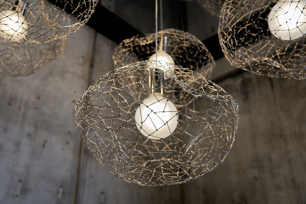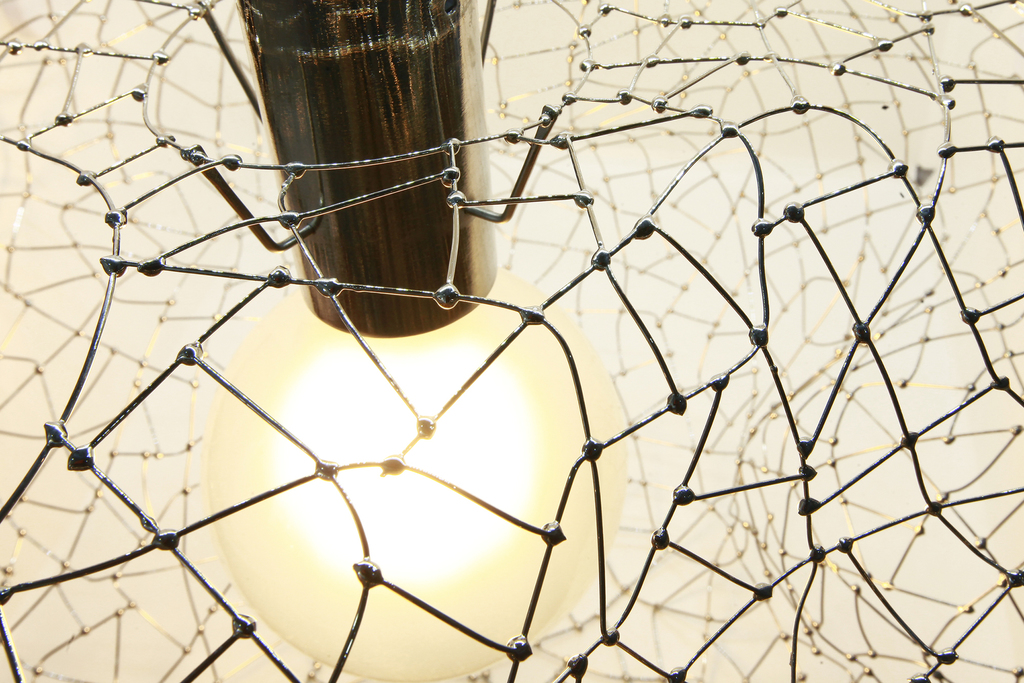 "Architectonic handcrafted lighting by Ango presents the infinite possibility of modern pendant lights on any scale as art pieces or light installations.  Ango lighting and furniture designs are very largely created with natural or recycled materials; silk cocoon, rattan, mulberry tree bark, or handworked steel with 100% lead-free welds as in the jewellery series of lighting, every piece created ecologically and utilising minimal energy."