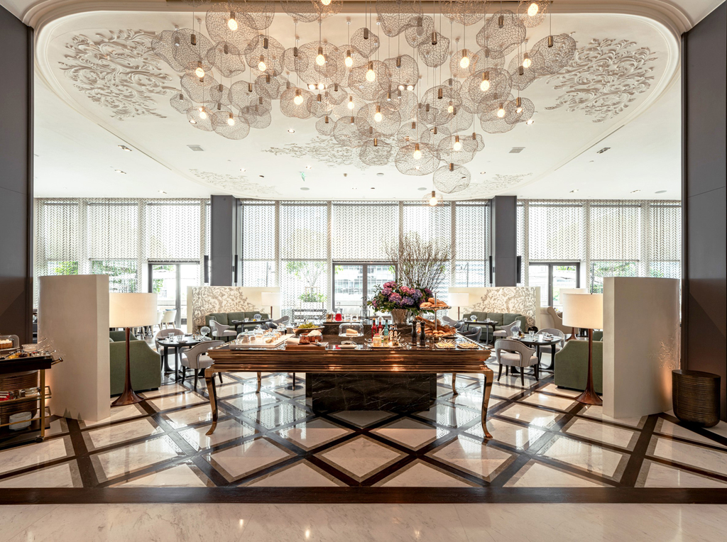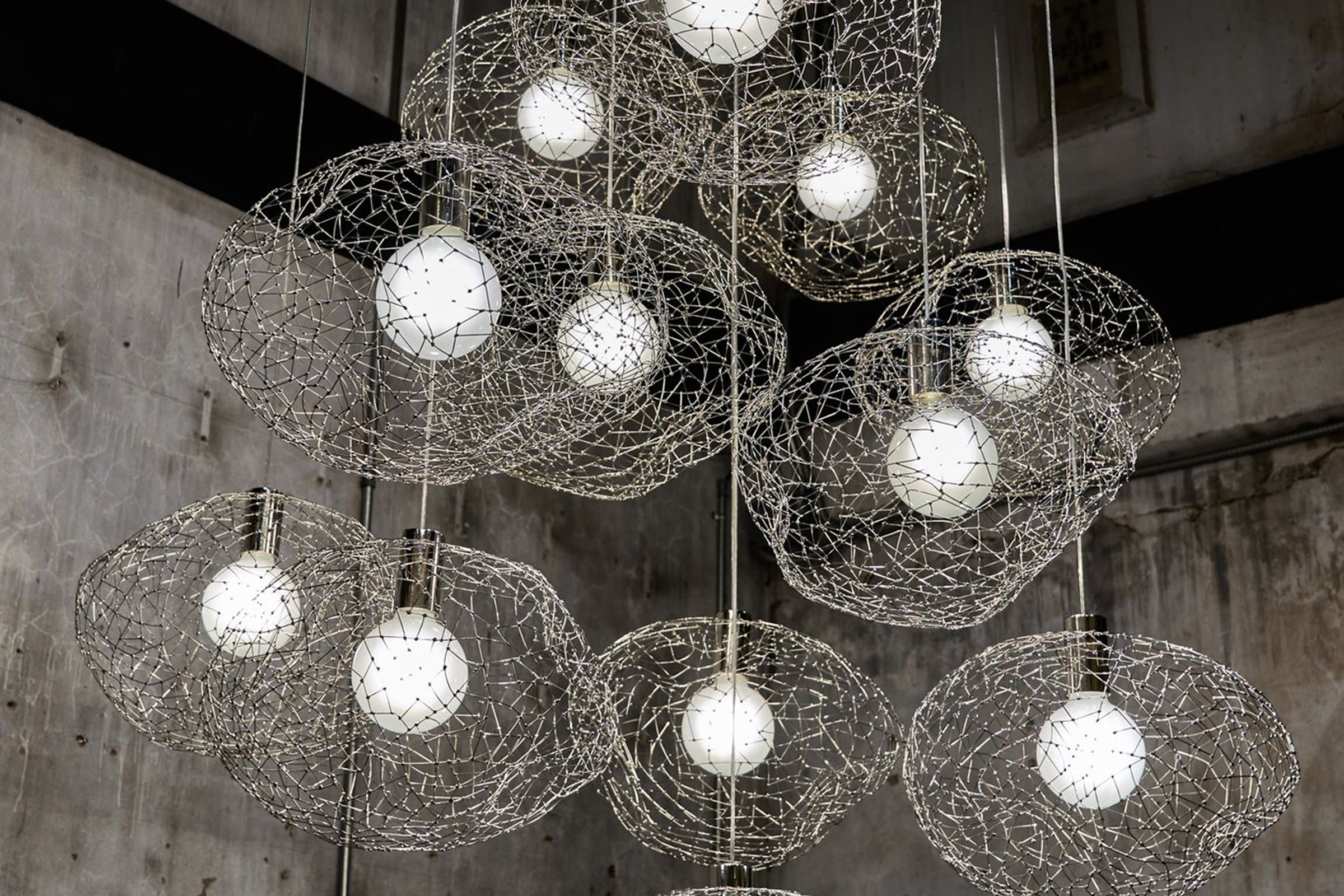 The Cloud modern chandelier collection is offered in different sizes and finishes (nickel silver, brass and copper), and was first seen as a special customisation within the Ango jewellery series of lighting with the installation in 2019 over the central section of the elegant Lakorn restaurant within the Rosewood Hotel, Bangkok.