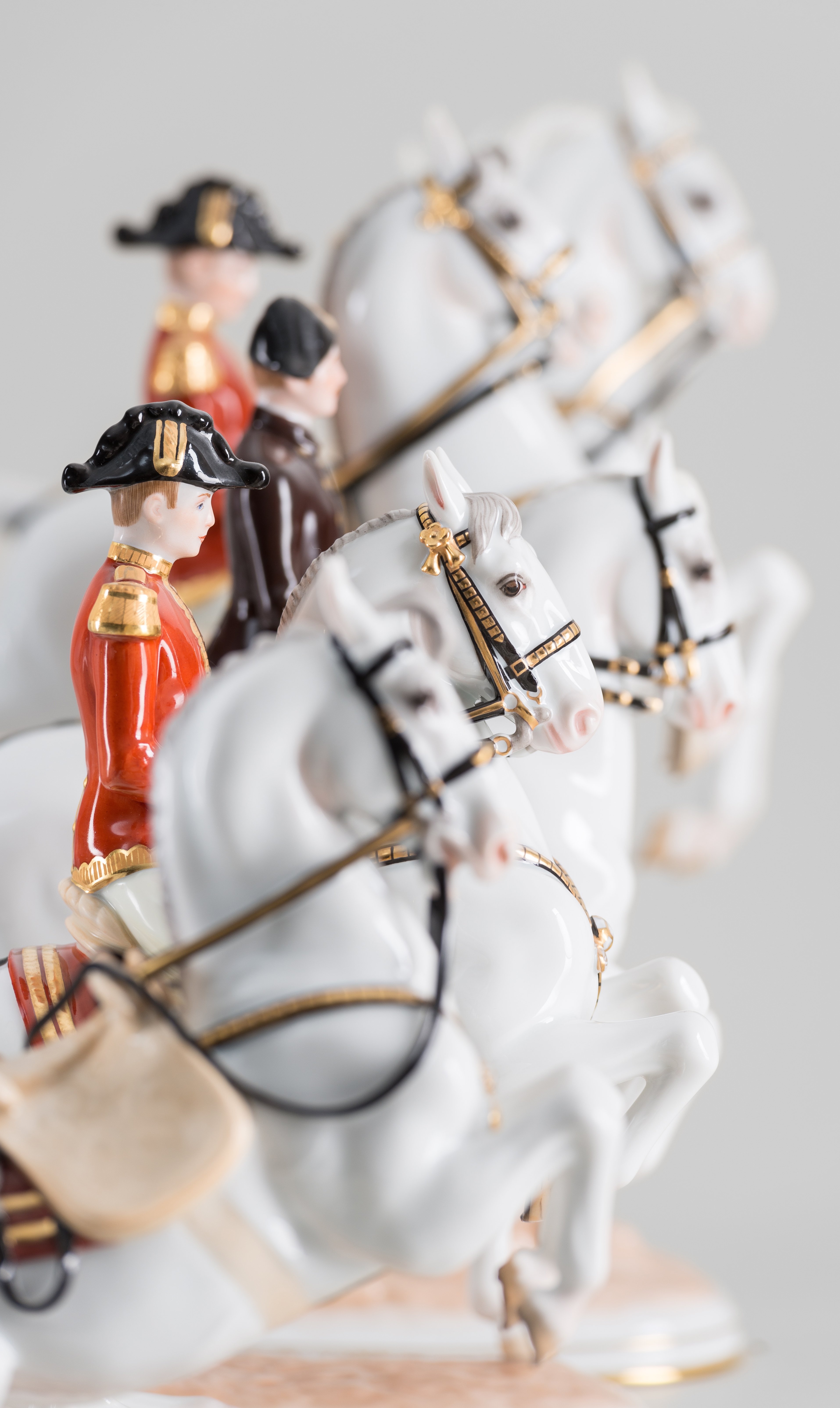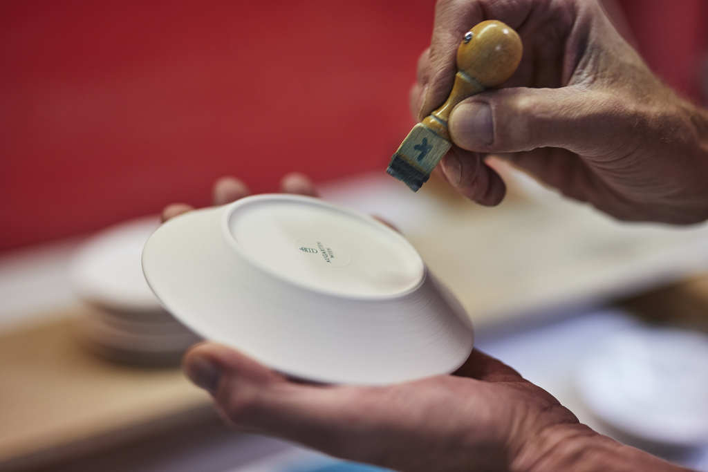 Since 1718, vases, cups and figurines have been moulded, repeatedly fired, glazed and hand-painted in a complex process. Polishing with sea sand and agate is what makes precious gold and platinum decorations shine.