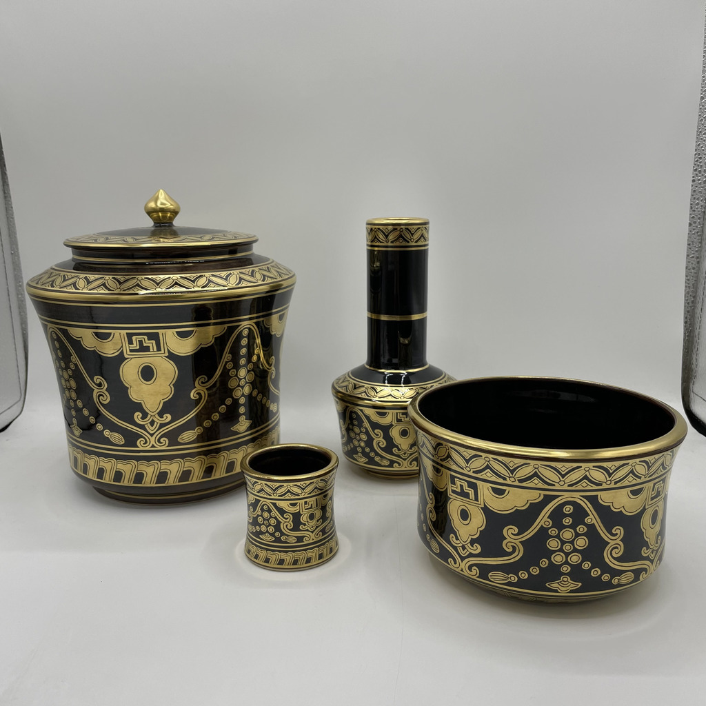 Currently, based on traditional techniques centered on Zee glaze, we produce a variety of ceramics such as works with overglaze paint and dye.