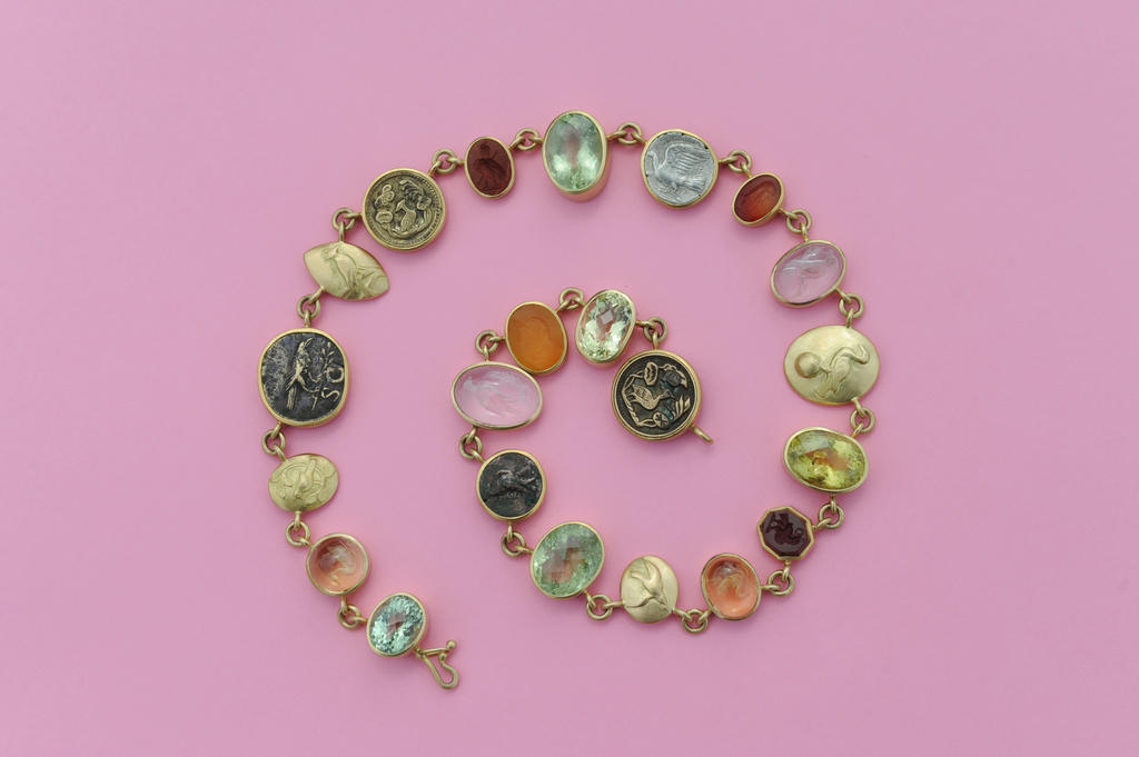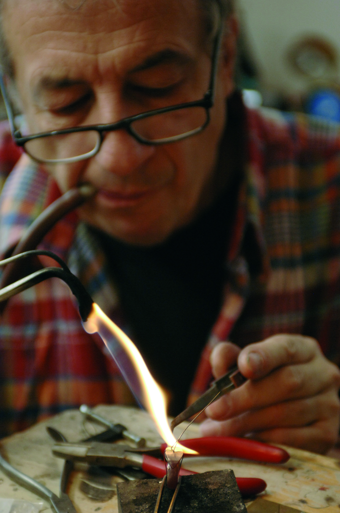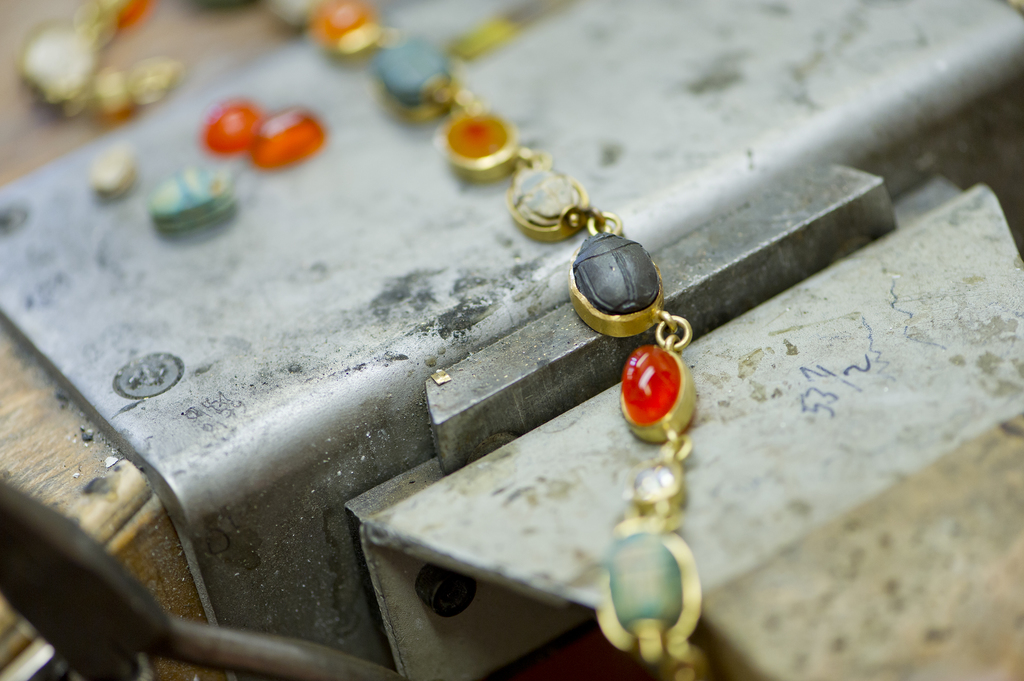 Häufig vergehen Jahre, bis eine Idee gereift ist und sich ein Thema herauskristallisiert – bis Christoph Freier ein einzelnes Schmuckstück, eine Kette in Angriff nimmt, Jahre, in denen der Goldschmied auf der ganzen Welt nach passenden Elementen sucht - antike Münzen, Teile japanischer Gürtelschnallen oder historischer Samuraischwerter, alte, reich verzierte Knöpfe aus Asien, ägyptische Fayencen, arabische Siegelsteine. Und so entsteht einzigartiger Schmuck, Schmuck, der Geschichten erzählt, Schmuck, der magisch ist.