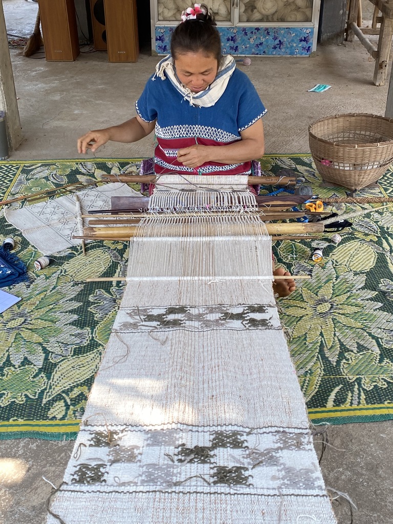 Spider house pattern (In Karen language is called Pakangdong, it is a traditional pattern created by Karen people by observing the beauty of spiders while nesting in trees. Also, Spider house pattern is one of the popular patterns inherited and woven into patterns on the fabric until now. This pattern can be seen in Karen's clothes, sarongs and bags