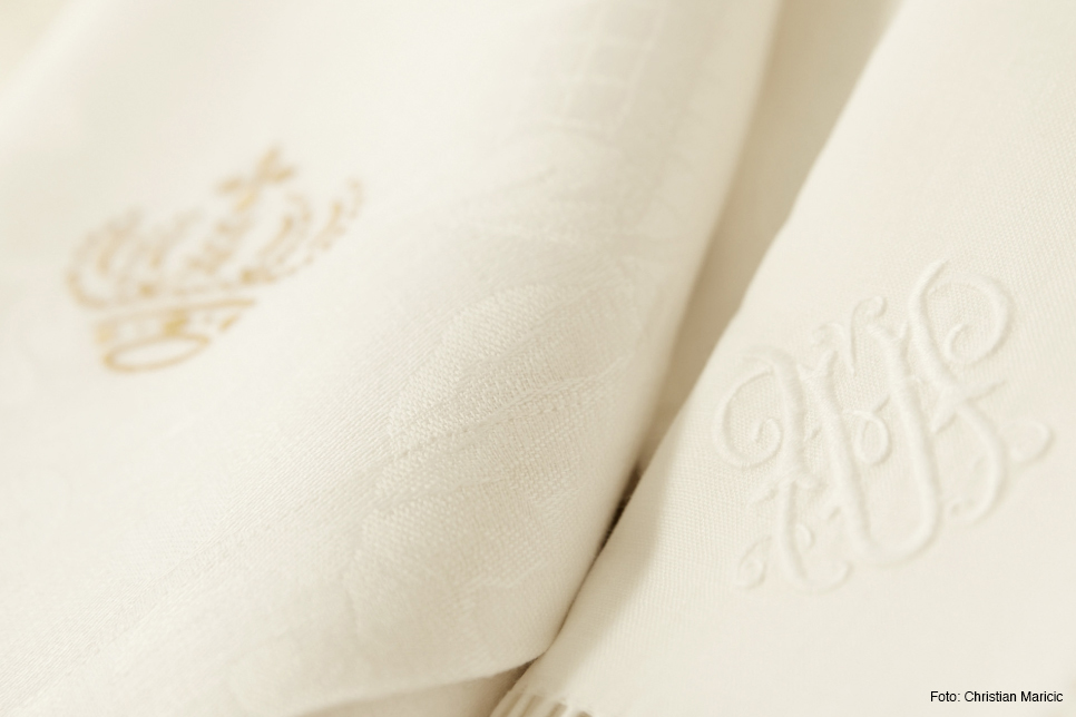 In unserem hauseignen Atelier können wir alle Sonderwünsche an Maßen und Stickerein erfüllen und auch vorhandene Familienmonogramme nachsticken.