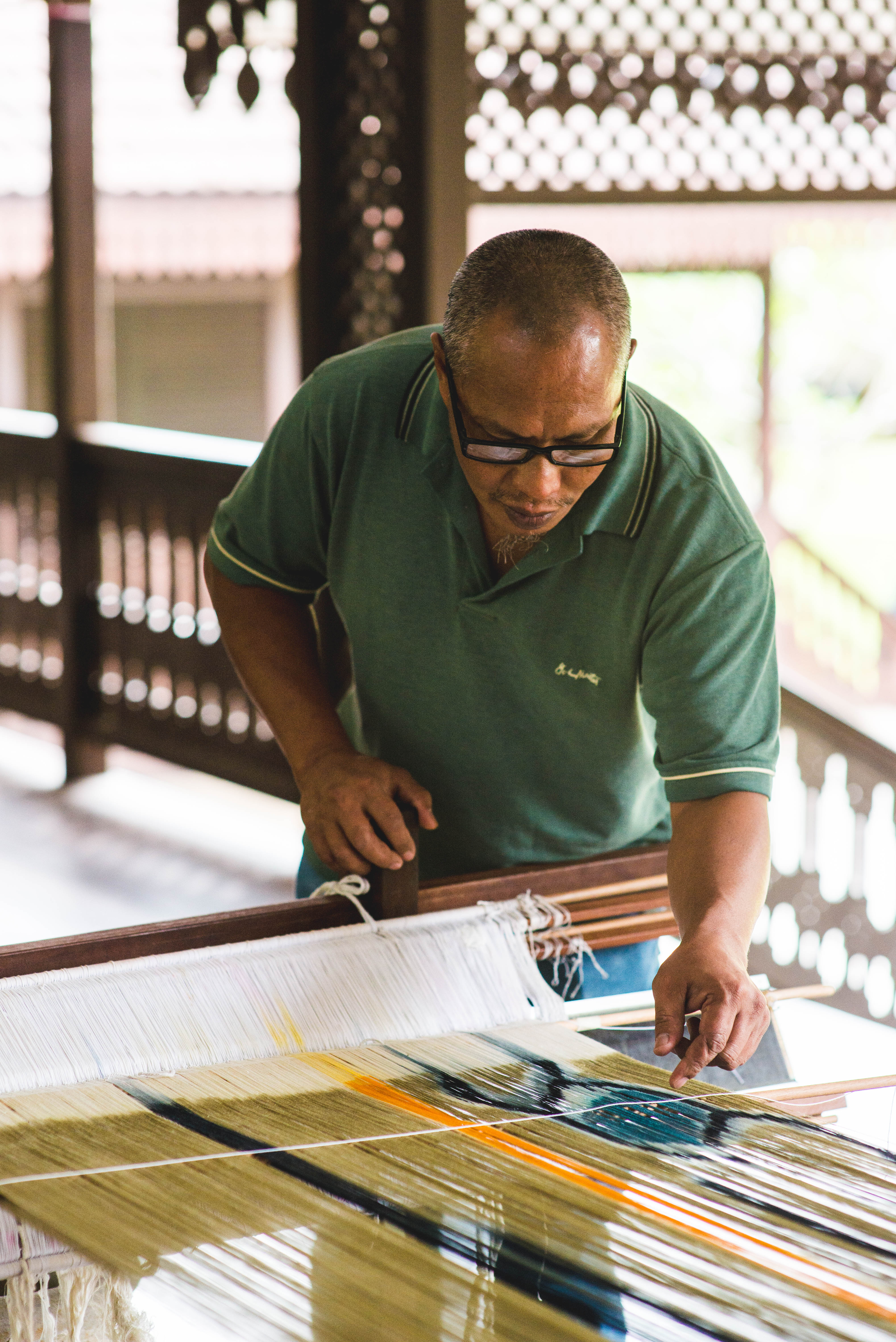 The Royal Pahang Weave is a Malaysian heritage textile known locally as Tenun Pahang. Tenun means to weave in the Malay language. The Foundation was originally founded by Her Majesty Queen Azizah as part of her initiative to preserve the thousand-year old craft of silk-weaving from her Royal seat in Pekan, Pahang. Her multi-layered approach to reviving and preserving this craft involved a close partnership with the Prison Department in Malaysia to upskill inmates, educating them in the traditional techniques of weaving silk.