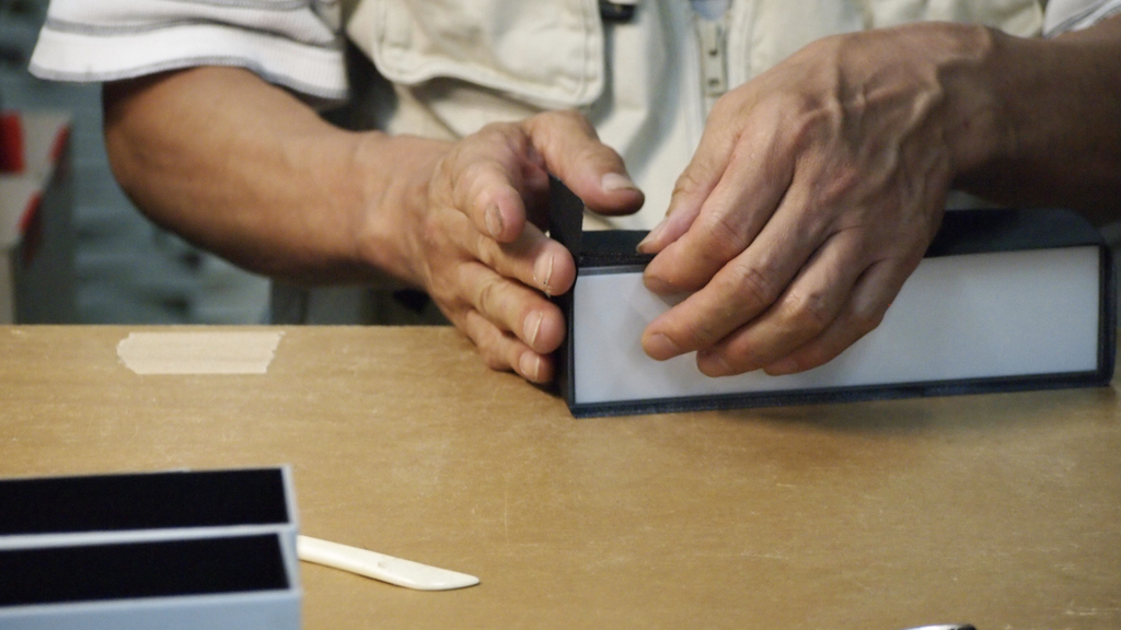 素材の中心となる和紙は、越前(福井県)をはじめとする日本の和紙生産地から取り寄せ、製造は、創業当時から関わりのある職人や協力工場で行い、全て国内生産、そのほとんどが京都です。