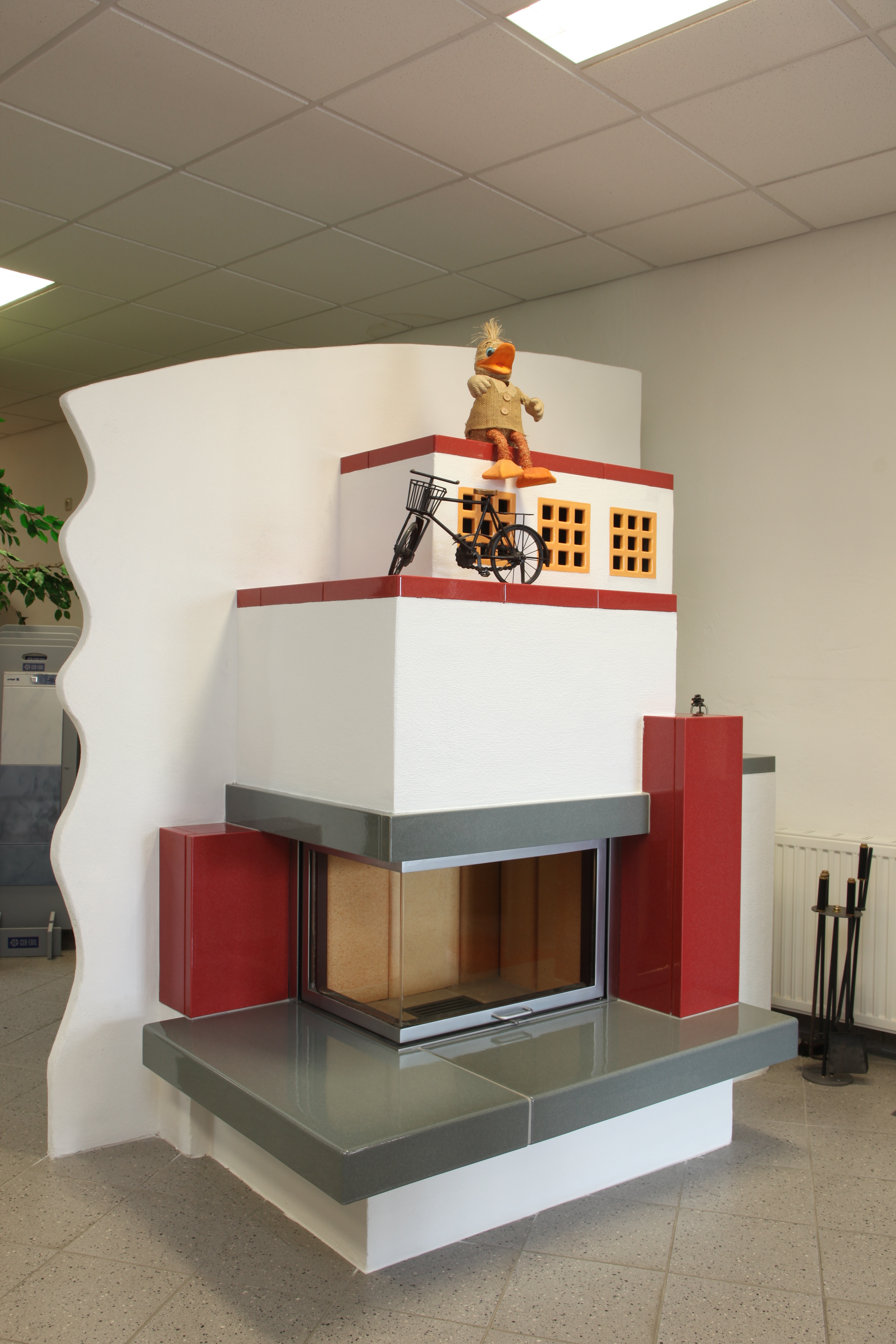Grundöfen, Warmluftöfen, Küchenherde, offene Kamine, zentral beheizte Kachelöfen, Kaminöfen, Ganzhausheizung, keramische Fliesen und Naturstein