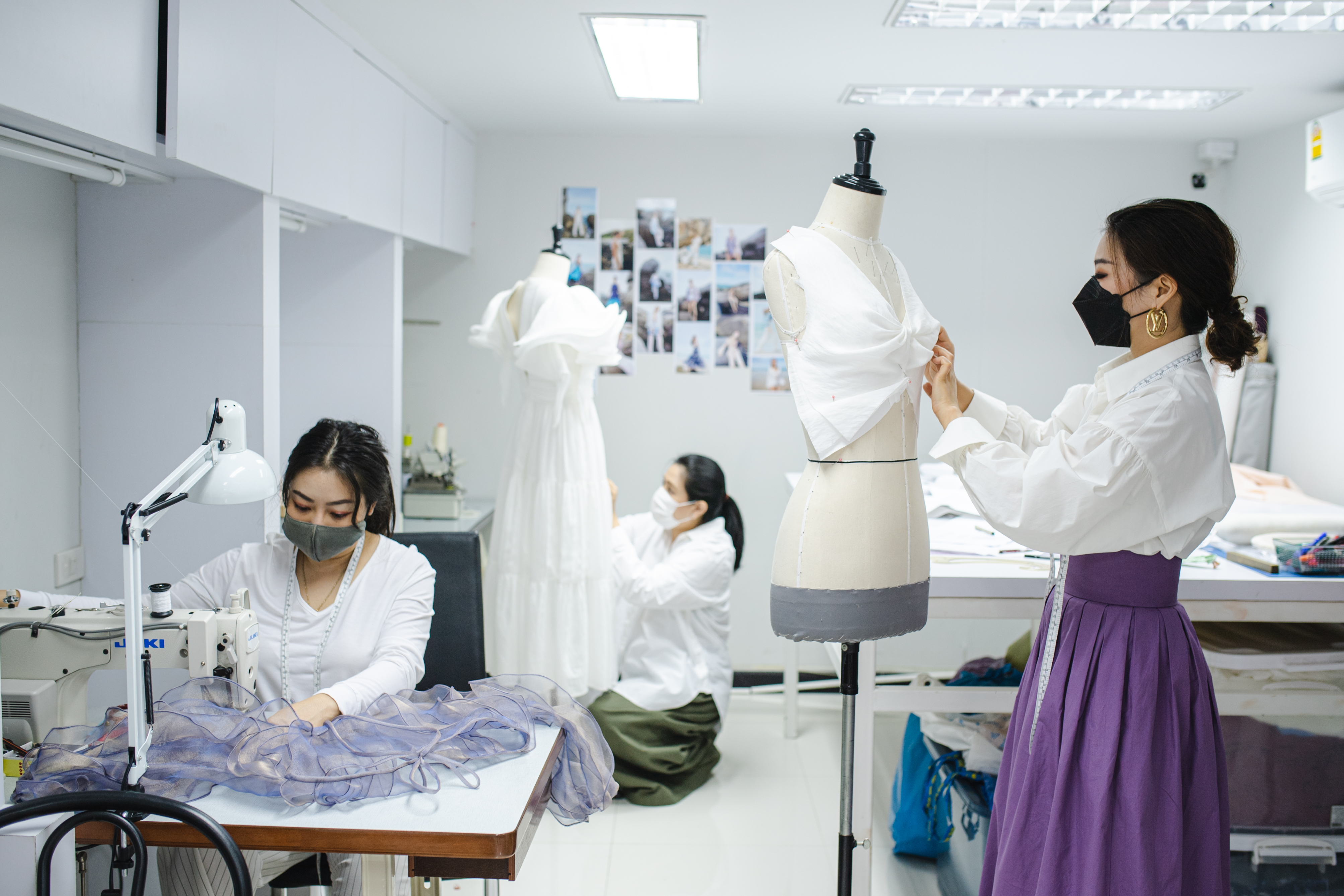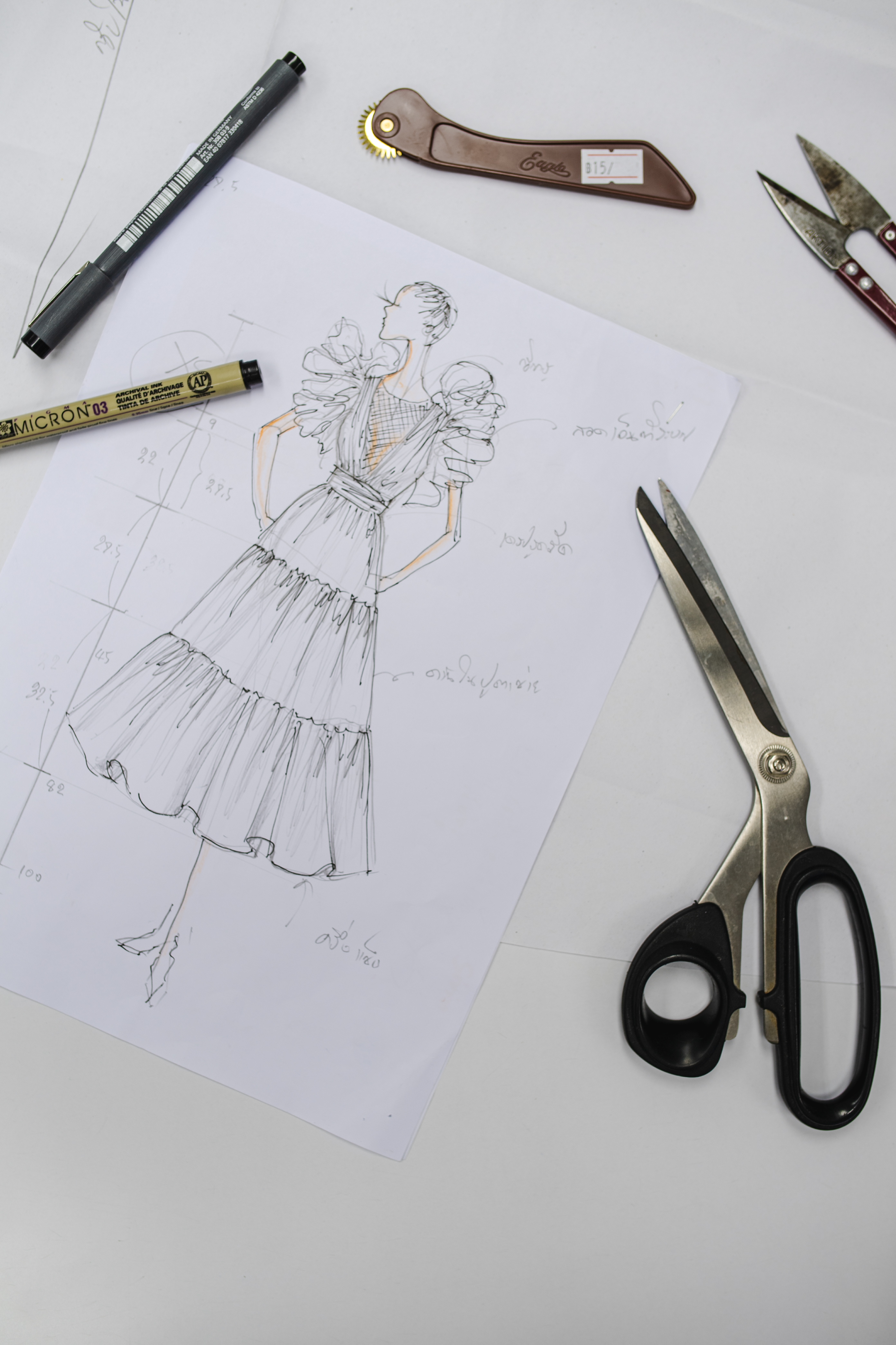The collections are always inspired by beautiful fabrics – textures, colors, patterns, layers. The designs are known for their details, perfection, and elegance. Sirintra’s style is all about feminine, glamorous, and lively. In every collection, the designs will represent the idea of meticulousness, optimism, and relationships which always express through the love of volumes, details, and layers.