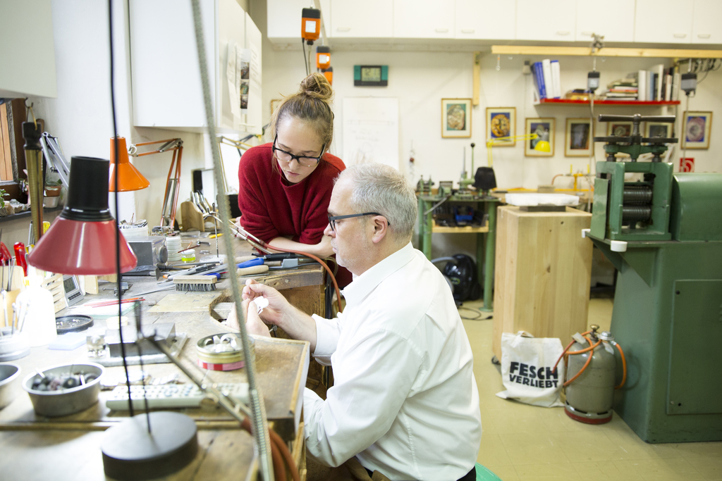 Unsere Kernaufgabe sehen wir darin, handwerkliches Können und fachliches Wissen des klassischen Gold- und Silberschmiedens zu unterrichten. Wir vermitteln traditionelle Techniken in zeitgemäßer Form. Ziel ist es, die StudentInnen auf eine selbständige Tätigkeit vorzubereiten. Wir bringen Erfahrungen aus unserem langjährigen Berufsleben in den Unterricht mit und freuen uns dieses Wissen mit unseren StudentInnen zu teilen.
