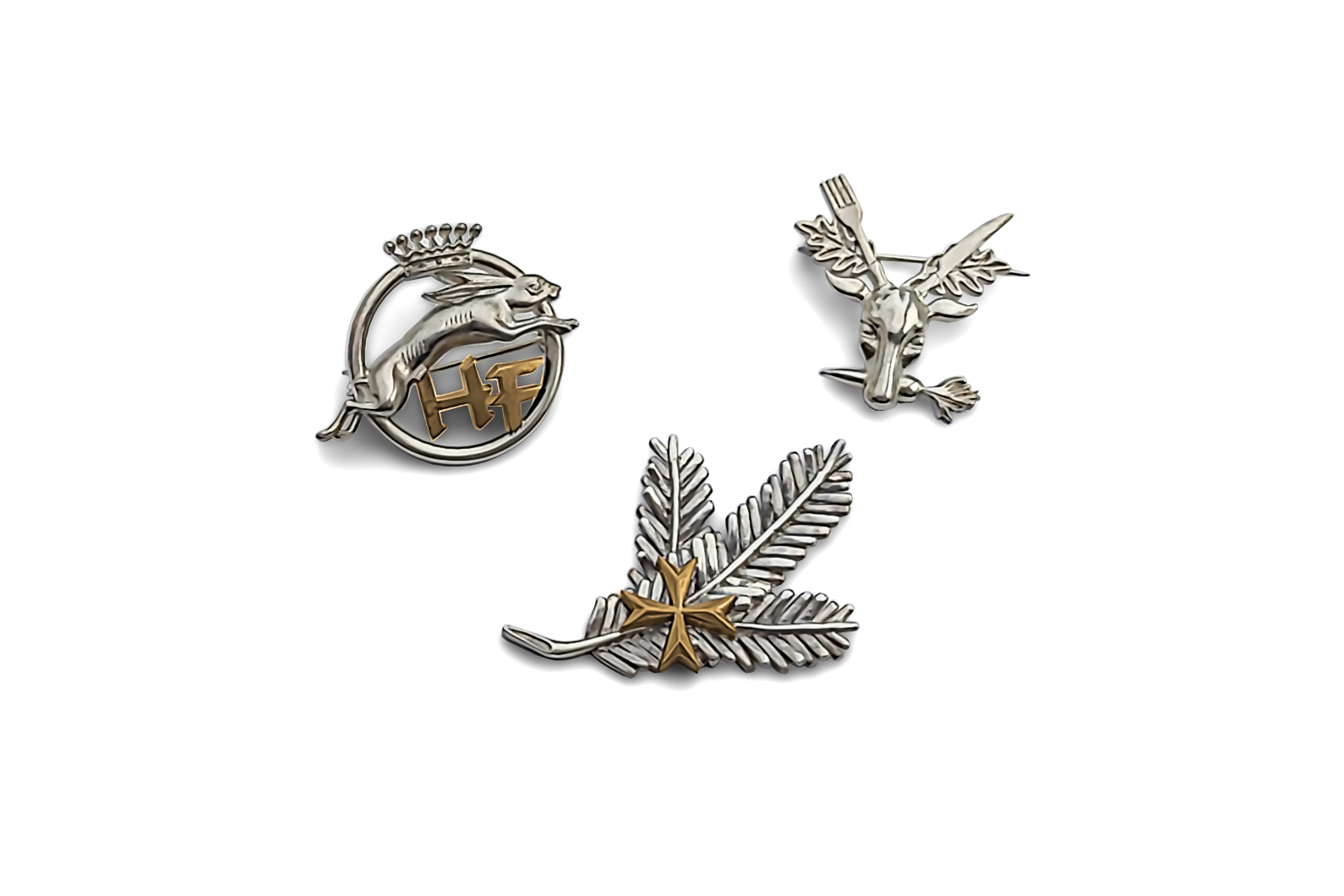 Hubert Count of Vojkffy wrote about the origins of the hunting insignia traditions that, as a small, simple sign of togetherness, someone thought of having a small symbol of their family or their place of residence made, decorated with various hunting motifs made. Elsewhere Prince Schwarzenberg remembered: “The valet received new liveries, the coachmen got new overcoats. A separate hunt insignia to be placed on the hats of all huntsmen and gamekeepers was minted”.