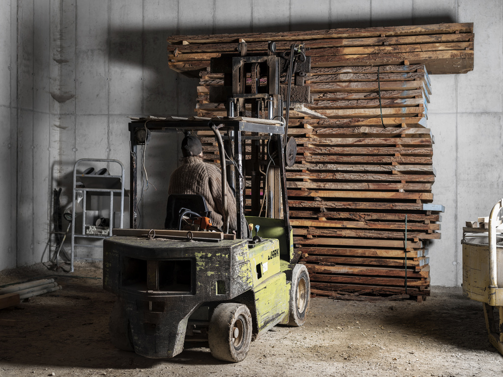 Stefan Knopp does not simply create pieces of furniture - he elicits their secrets from the trees. He tracks down the individual stories of his woods and makes them visible using his own, patented processing methods, which create unique structures: by charring with fire or by washing out with water.