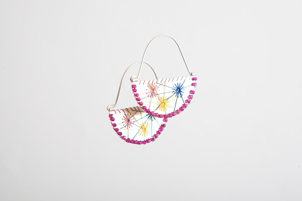As a trained and certified goldsmith, Josepha Raho uses coloured filaments and threads with precious metals, weaving them elegantly around shiny stones and other objects of beauty. Her inexhaustible inspiration is the natural world around herself. Round and round in all shapes and forms. Her Jewellery is 100% handmade, wrought with love and affection into a unique creation that cannot be ignored.