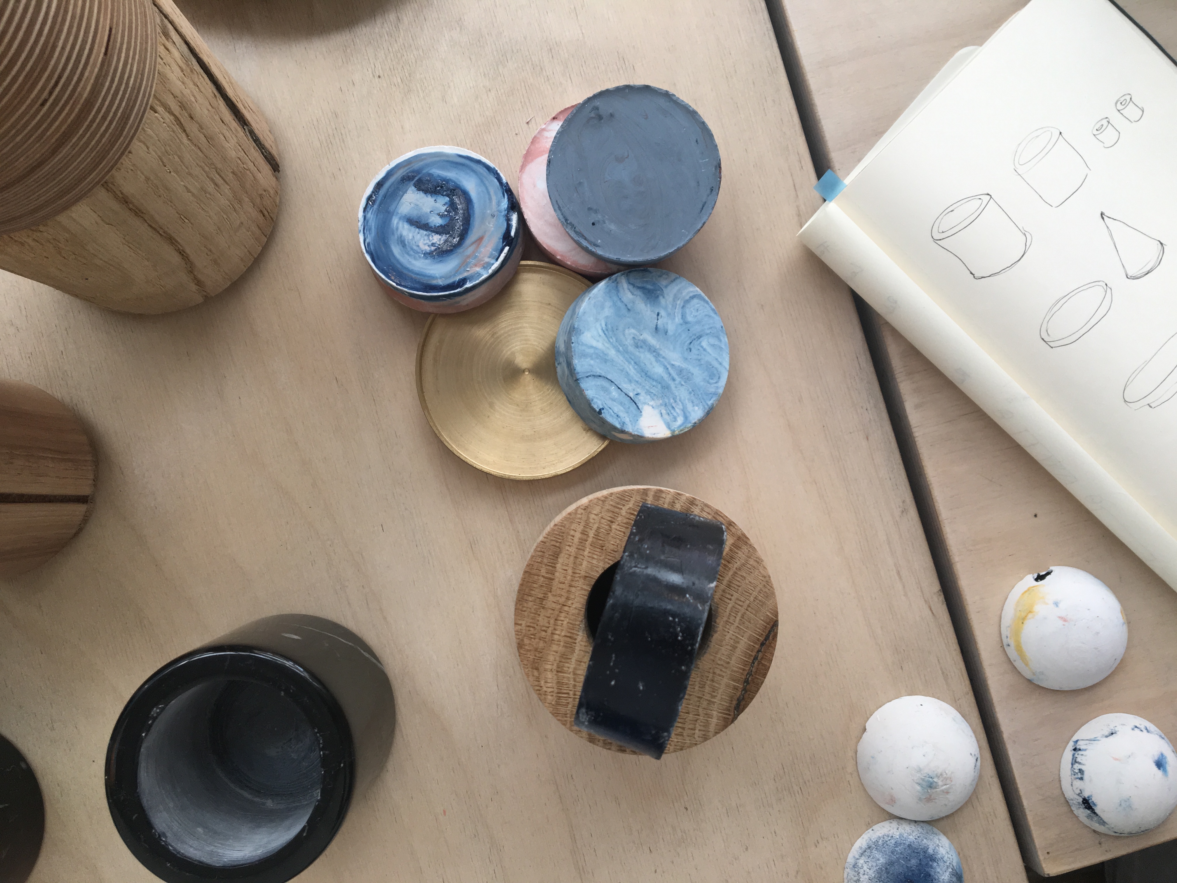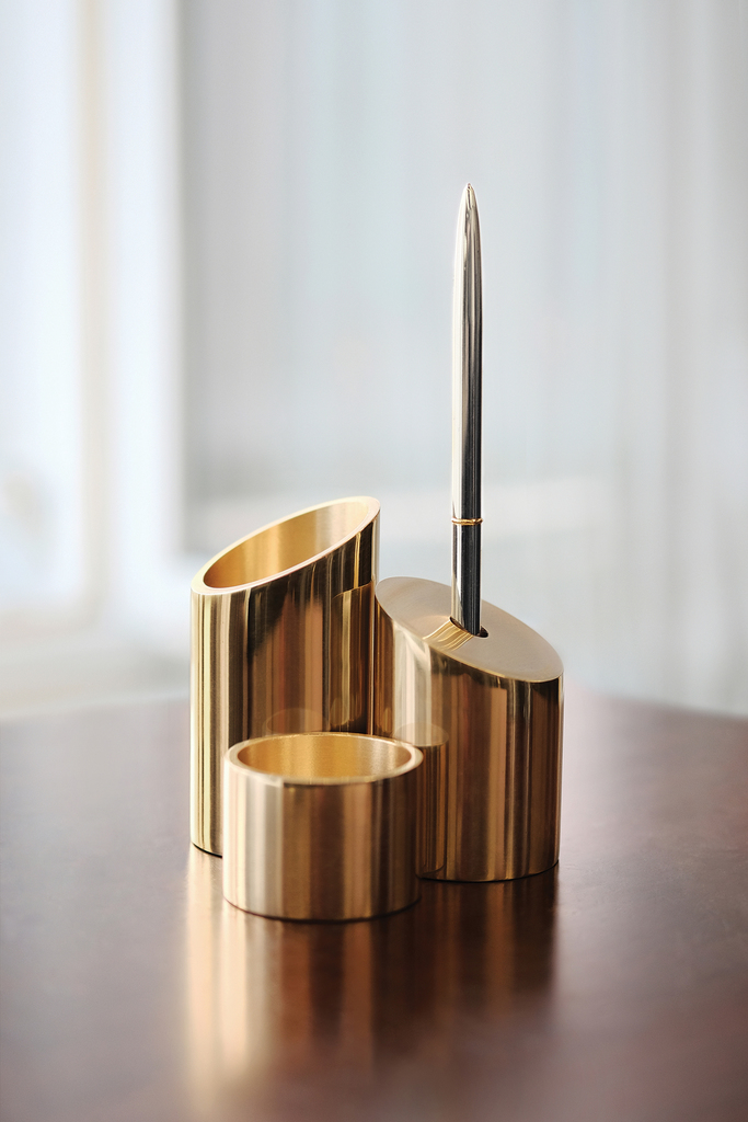 Der multifunktionalen Organizer entstand in Kooperation mit Arturo Soto. Dabei stand bei ihnen die Verwendung des Abfallproduktes einer Marmorbohrung an erster Stelle. Angelehnt an dessen Zylinderform und den Überraschungseffekt einer Babuschka, entwickelten sie Deskcape. Das hohe Gewicht des Marmors dient somit zur Stabilisierung von Utensilien am Arbeitsplatz. Stiftehalter, Untertasse, Beschwerer, Kollektor – sofern die einzelnen Objekte nicht in Verwendung sind, ruhen sie gestapelt als schlichte Skulptur voller Überraschungen.