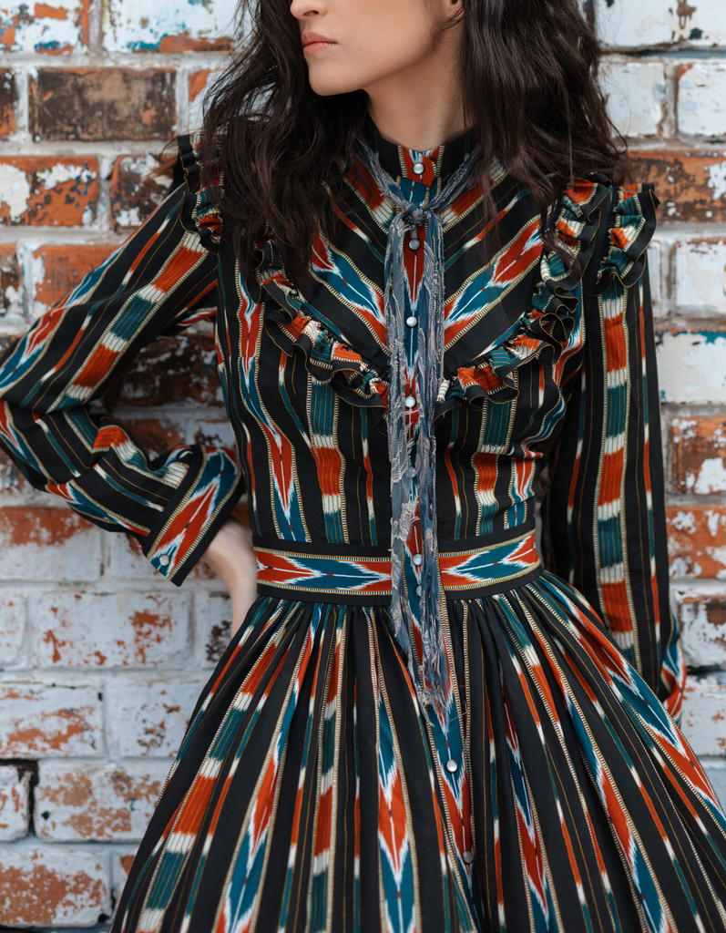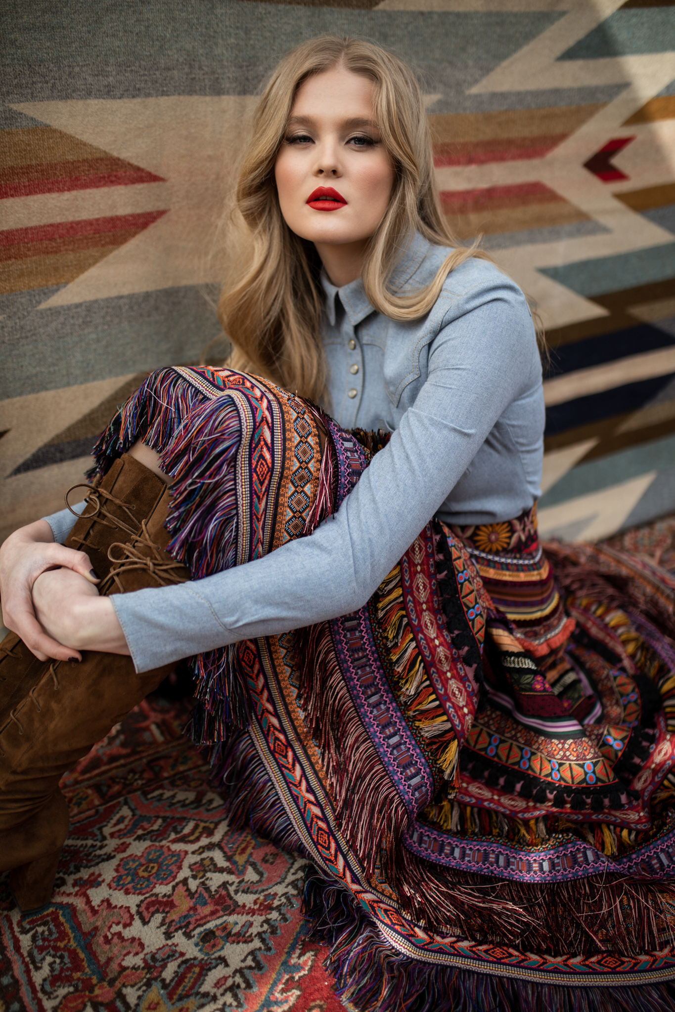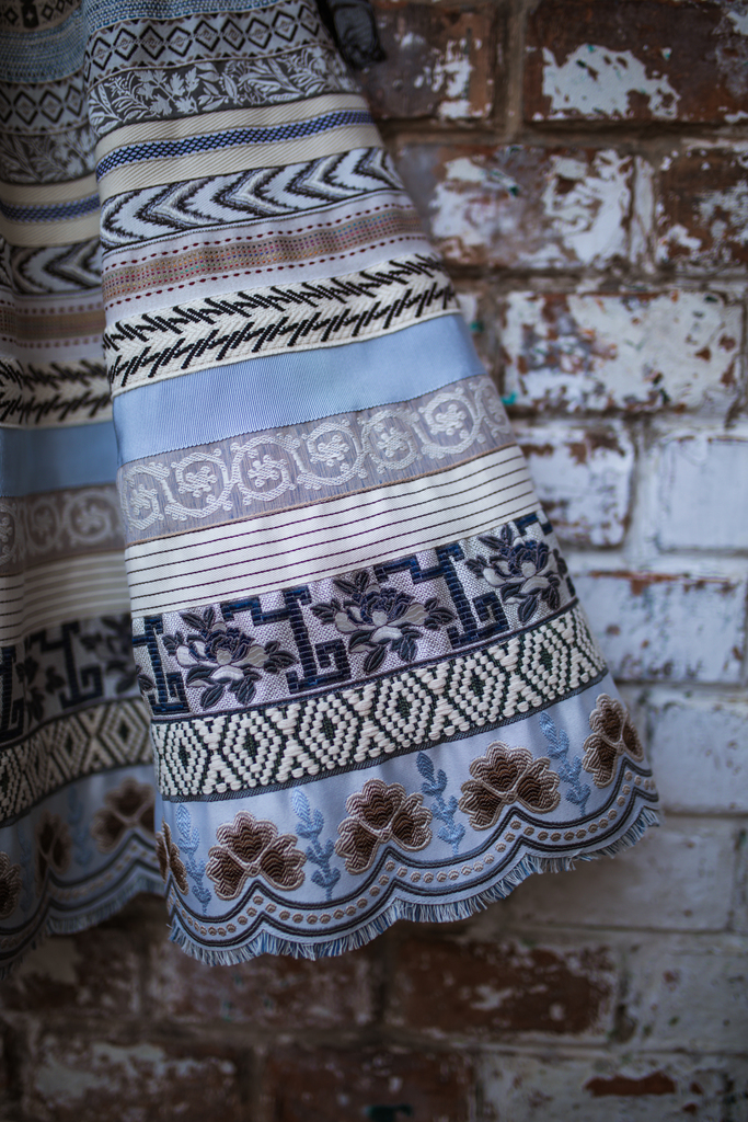 Lena Hoscheks ikonische Bänderrocke werden mit viel Sorgfalt und Aufwand aus vielen, verschiedenen Bändern gefertigt. Durch den die Taille umschmeichelnden Schnitt und die schöne A-Linie ist jeder Bänderrock eine Ode and die Weiblichkeit und den Bohemian Lifestyle.