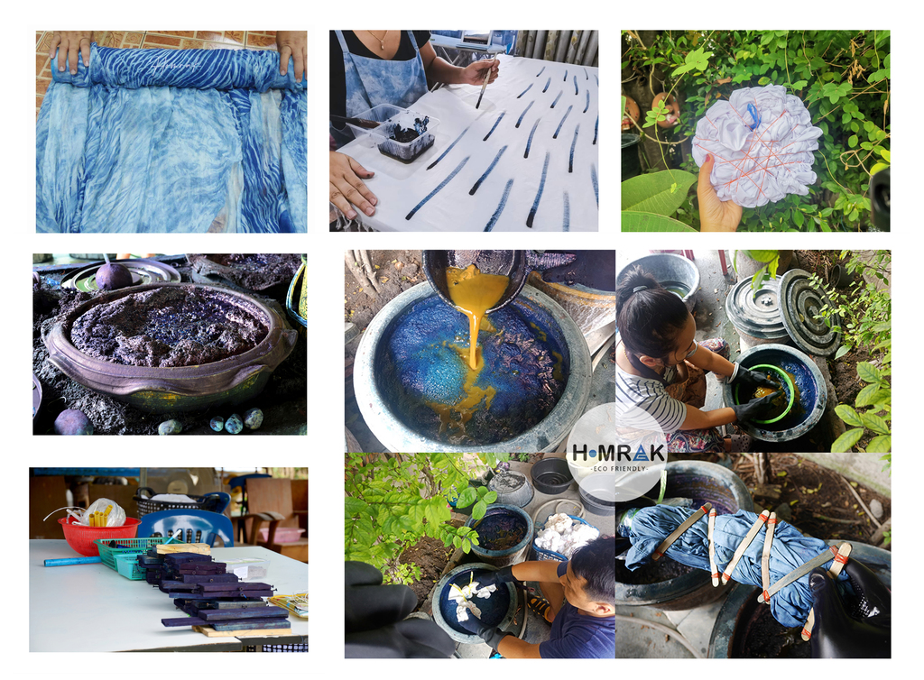 HOMRAK is the creator conserves local wisdom natural indigo tie-dye and advances through incorporating innovation. By utilizing indigo, a known icon for natural dye, the ancient local wisdoms in harmony with modern innovation.