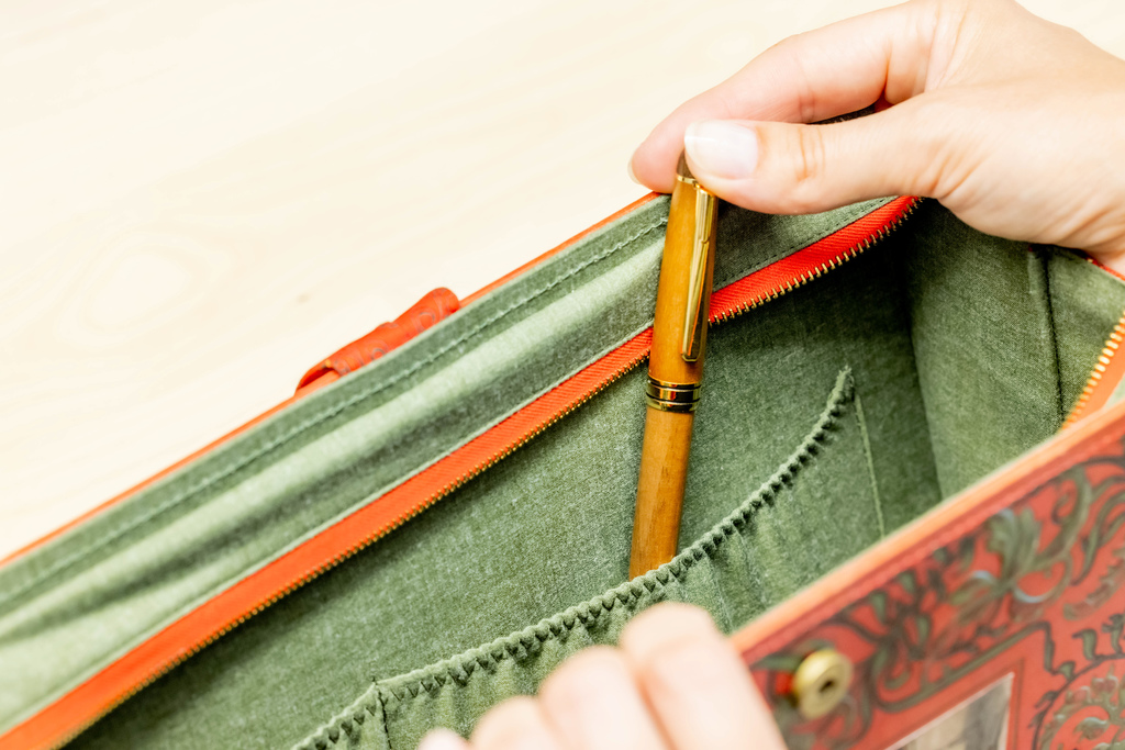 Diese sind vielfältig und mitunter auch mehr als eine Tasche. Bernadette Hartl entwirft auch persönlich gestaltete Buch-Schatullen, Toilettentaschen, Notizbücher und Lesezeichen.